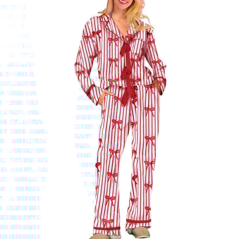 Sweet Heart | Pyjama manches longues à motif cœur/nœud | Tenue d'intérieur confortable deux pièces