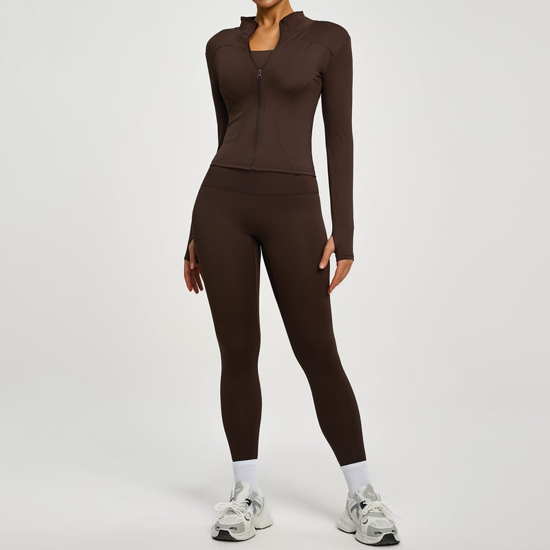 Survêtement slim zippé à manches longues | Tenue de yoga et de course à pied taille haute gainante